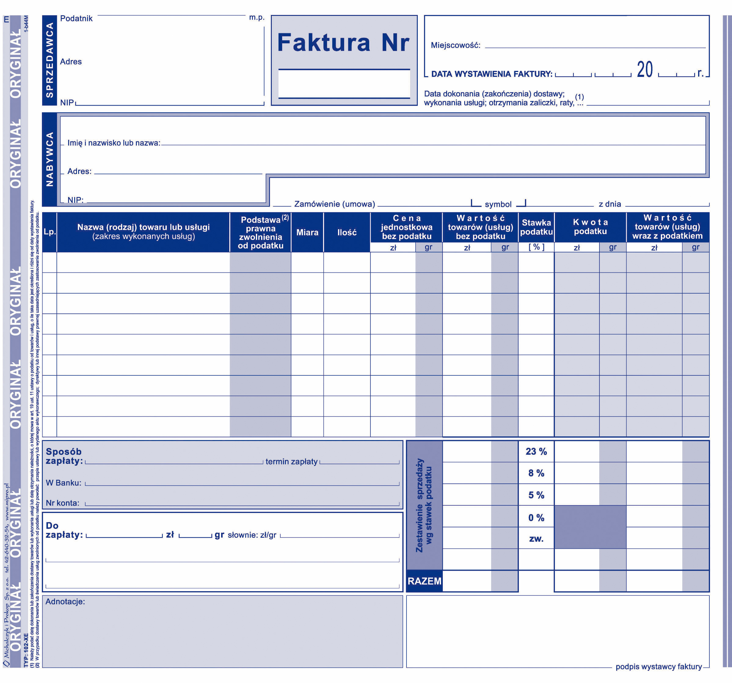 zastosowanie: | faktury i inne dokumenty wynikające z przepisów o podatku od towarów i usług |