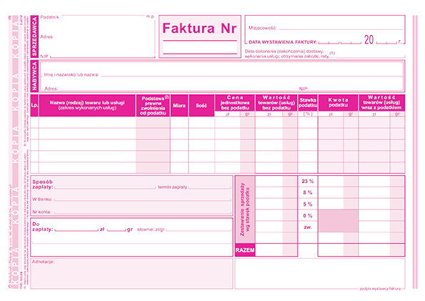 zastosowanie: | faktury i inne dokumenty wynikające z przepisów o podatku od towarów i usług |