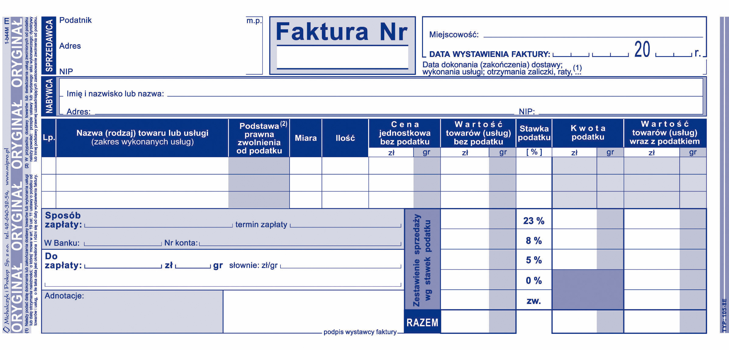 105-8E Faktura wzór pełny dla prowadzących sprzedaż w cenach netto 105-8E
