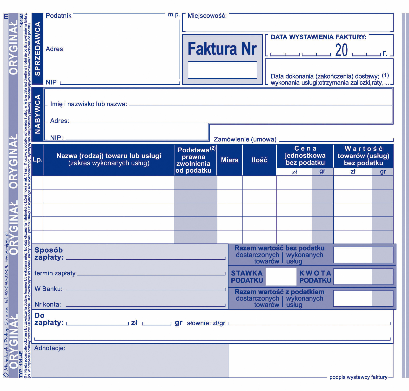 zastosowanie: | faktury i inne dokumenty wynikające z przepisów o podatku od towarów i usług |
