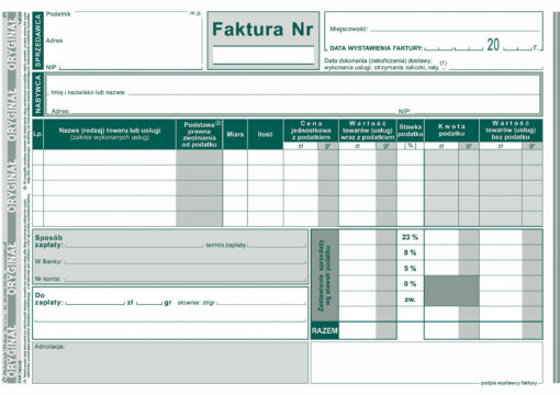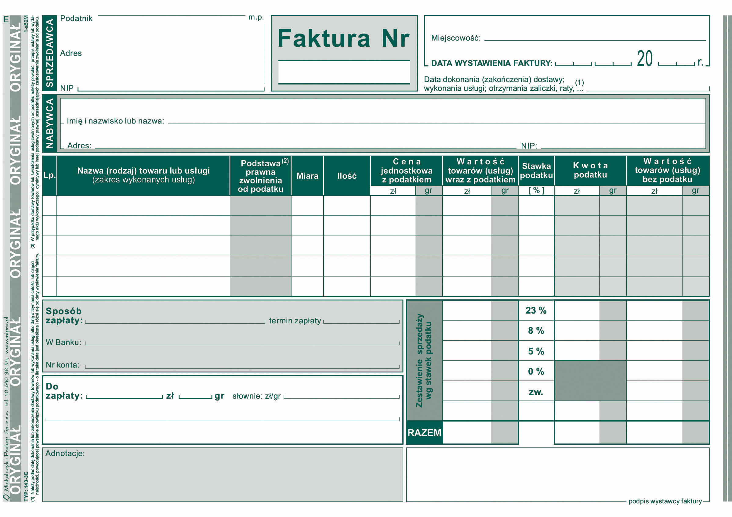 Rachunek dla zwolnionych podmiotowo z VAT 231-3
