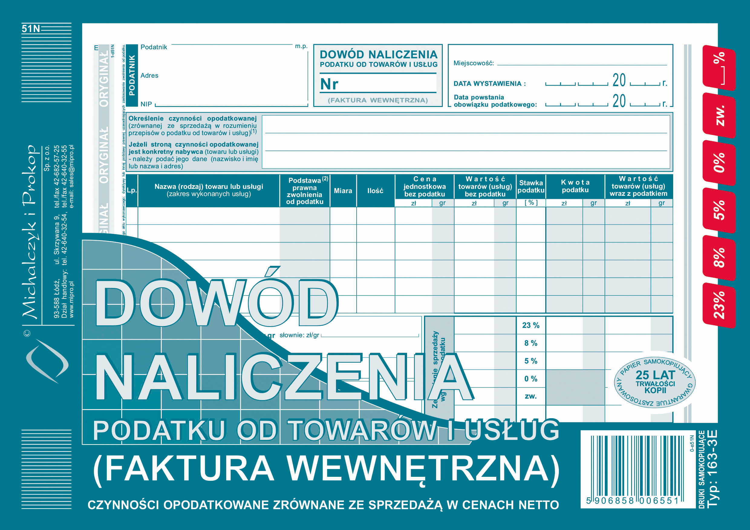 163-3E Dowód naliczenia podatku od towarów i usług (faktura wewn.) czynności opodatkowane zrównane ze sprzedażą w cenach netto 163-3E