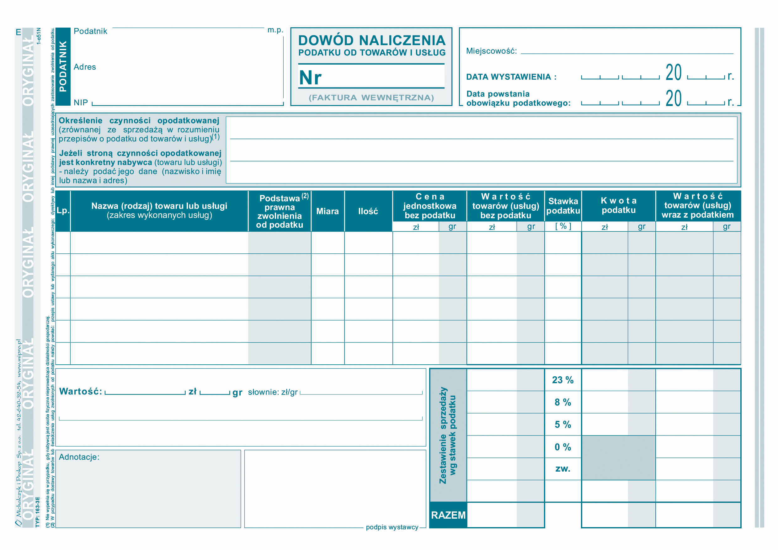zastosowanie: | faktury i inne dokumenty wynikające z przepisów o podatku od towarów i usług |