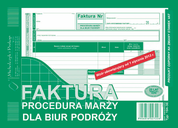 194-3E Faktura procedura marży dla biur podróży 194-3E