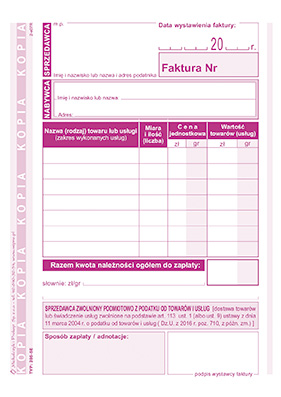 zastosowanie: | faktury i inne dokumenty wynikające z przepisów o podatku od towarów i usług |