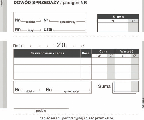 zastosowanie: | rachunki i inne dowody sprzedaży |