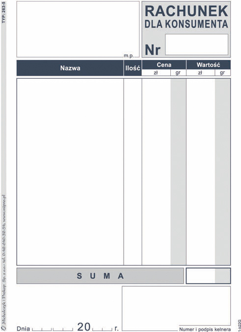 zastosowanie: | rachunki i inne dowody sprzedaży |