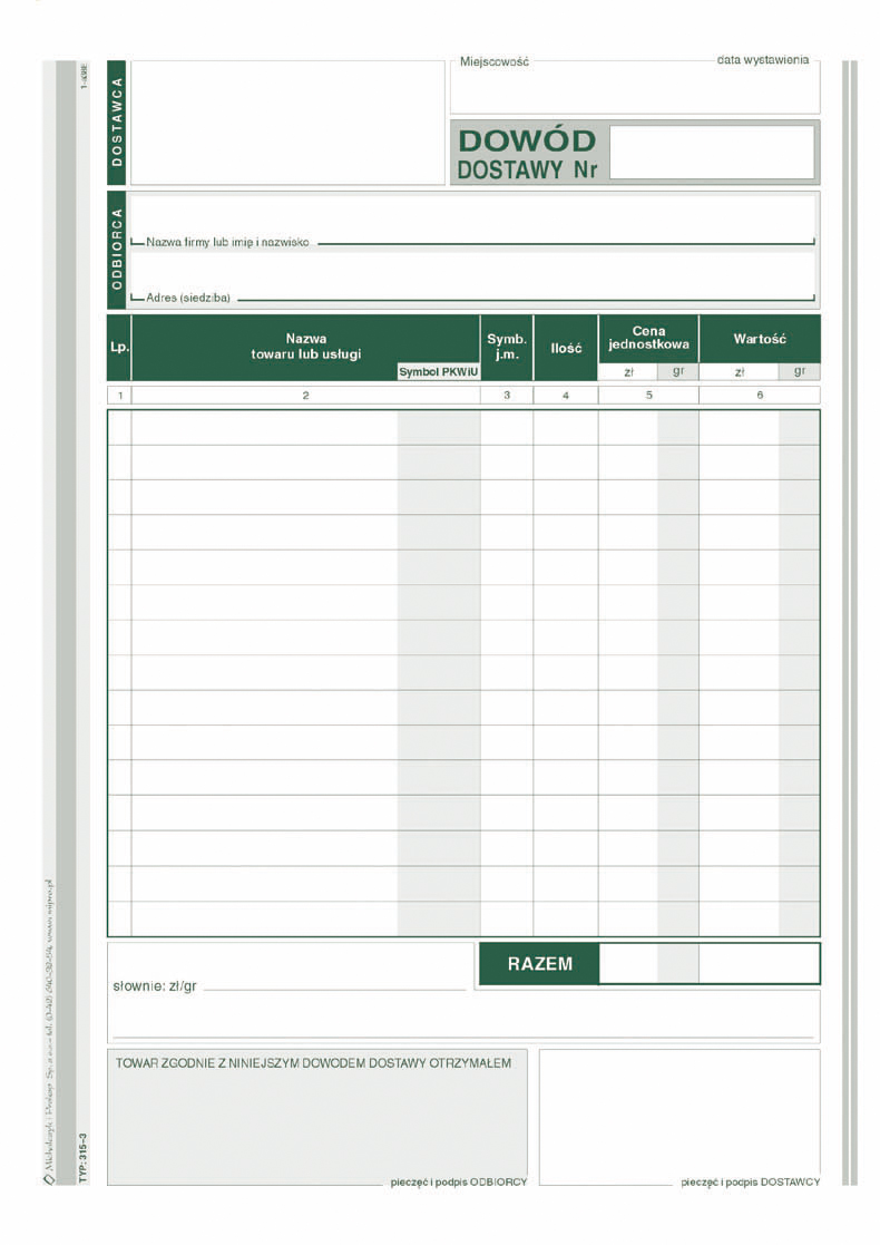 315-3 Dowód dostawy 315-3
