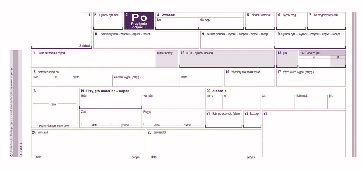 384-8 Po przyjęcie odpadu jednopozycyjne 384-8