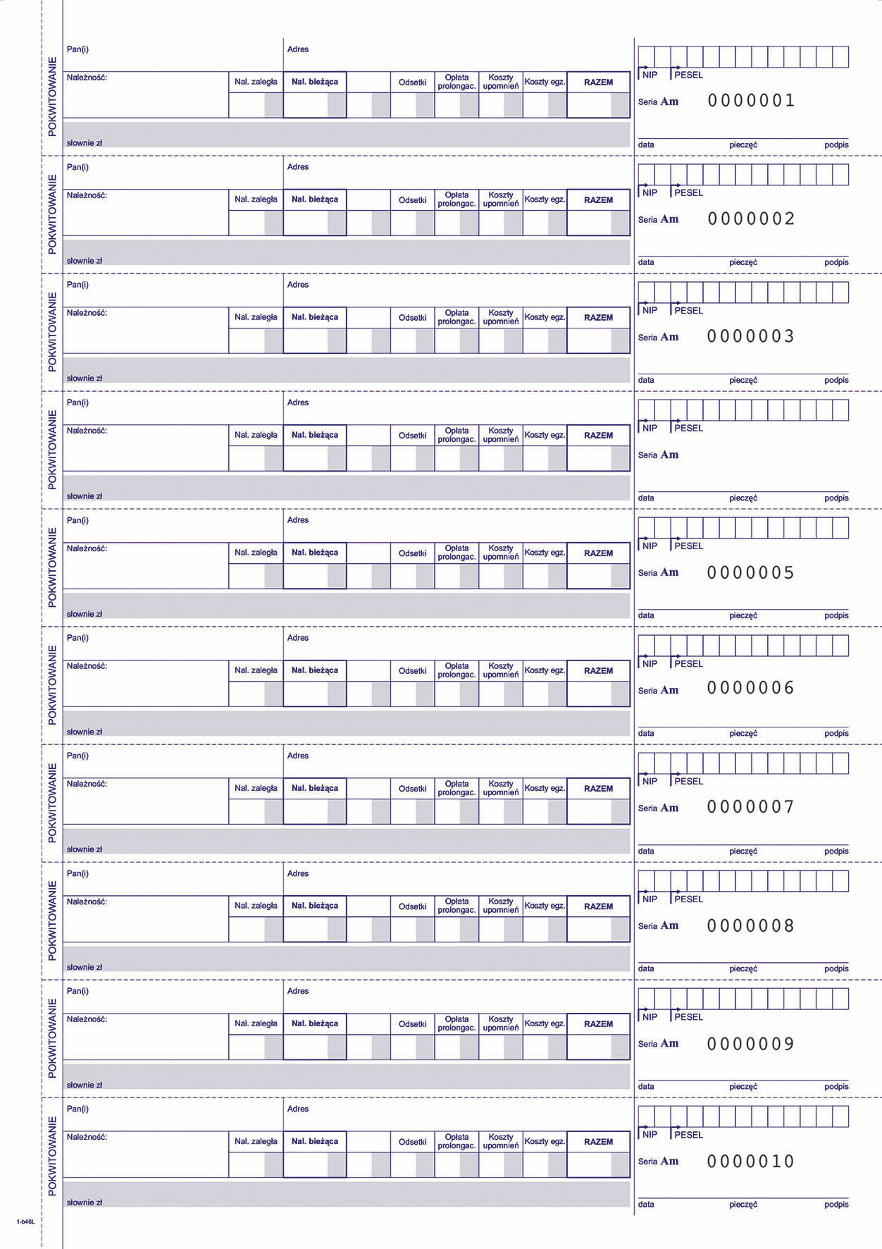 400-1 Kwitariusz przychodowy (numerowany) 400-1