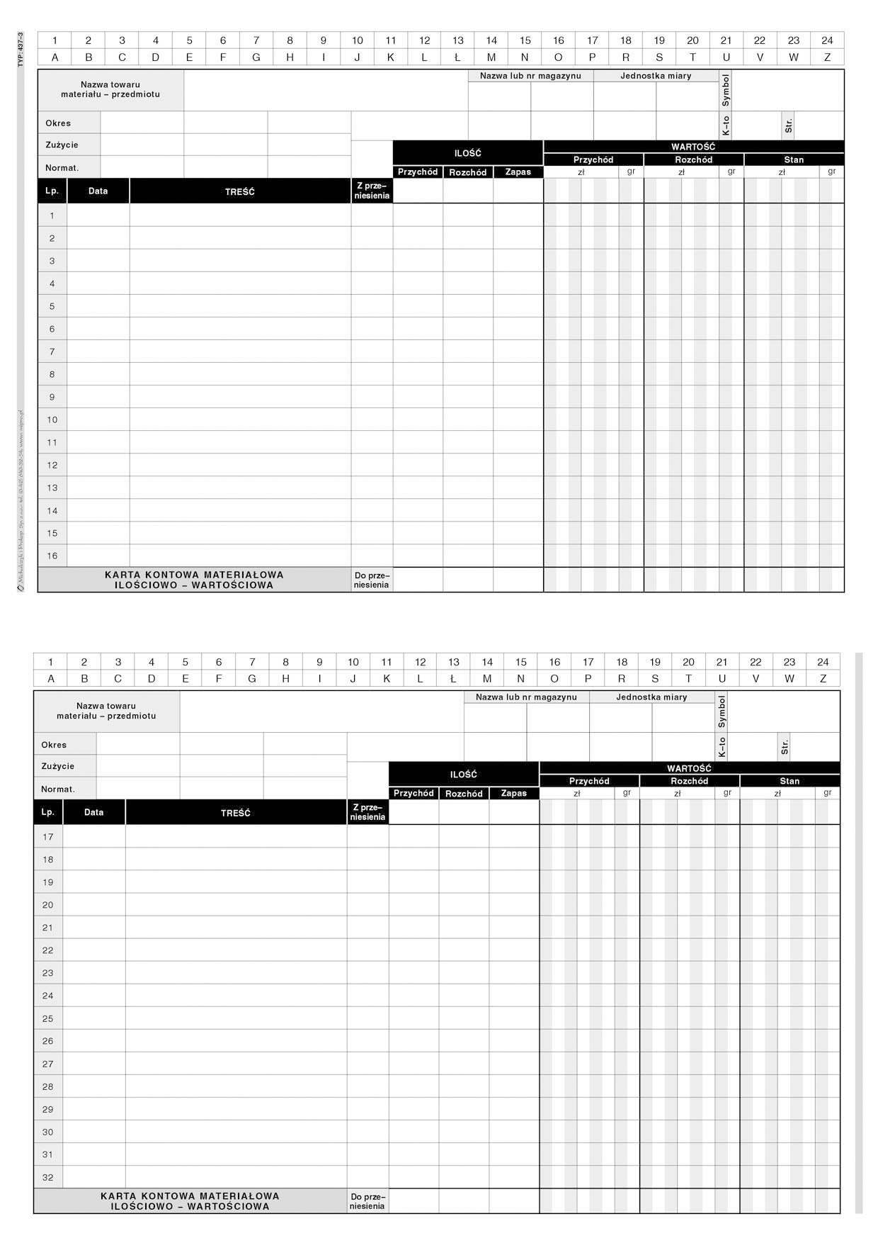 437-3 Karta kontowa materiałowa ilościowo-wartościowa A5 437-3