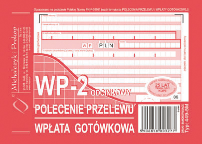 Polecenie przelewu wpłata gotówkowa 2-odcinkowe A6 WP-2 449-5M