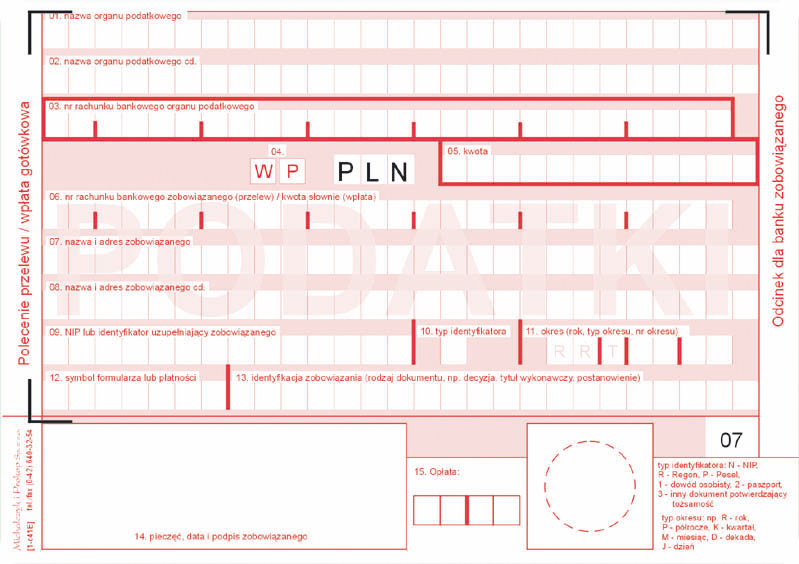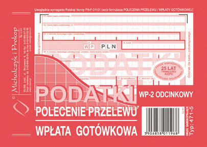 Podatki polecenie przelewu – wpłata gotówkowa – 2 odcinkowe A6 471-5