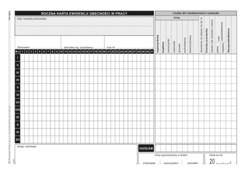 508-3 Roczna karta ewidencji obecności w pracy A5 508-3