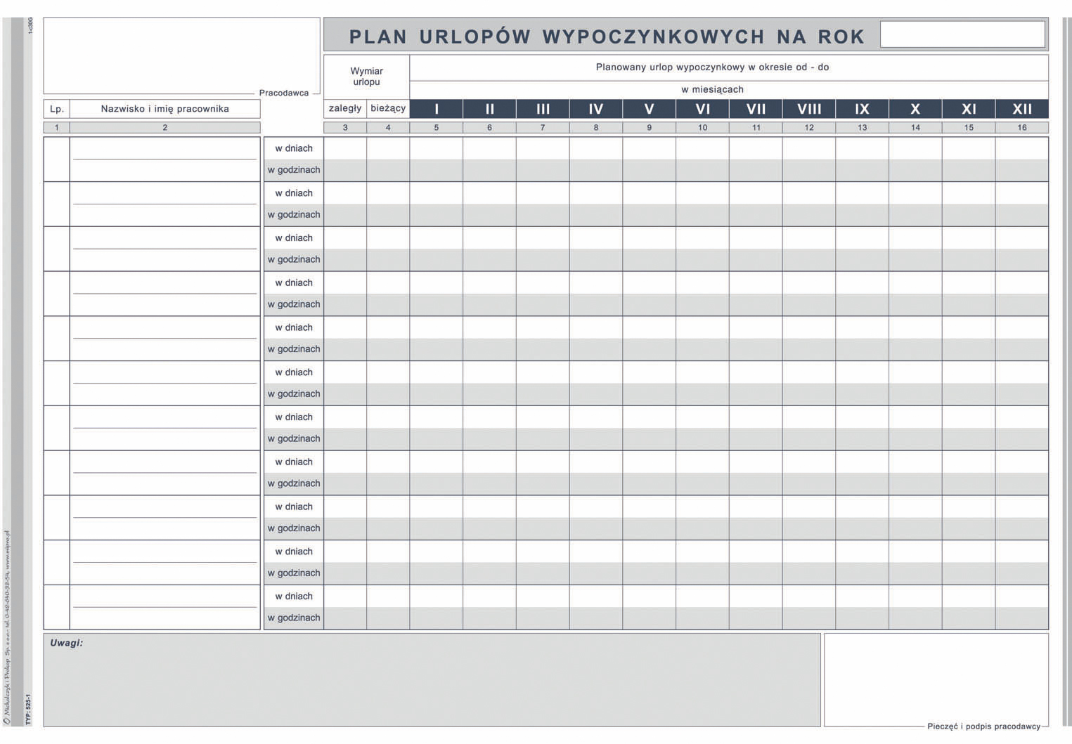 525-1 Plan urlopów wypoczynkowych A4 525-1