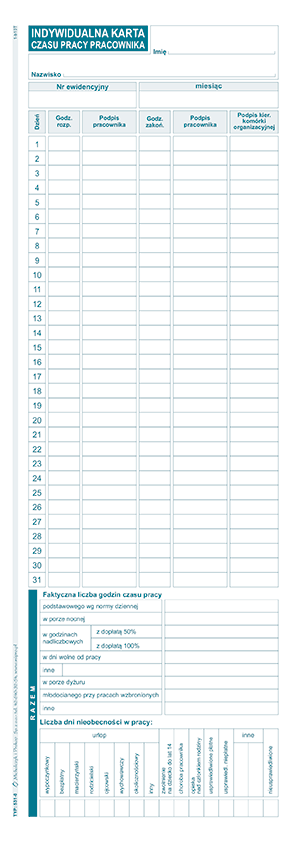 531-0 Indywidualna karta czasu pracy pracownika 531-0