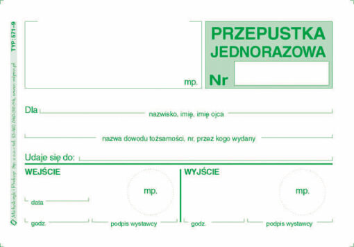 Znaczników: druki, druki akcydensowe, druki księgowe, Michalczyk i Prokop, przepustka
