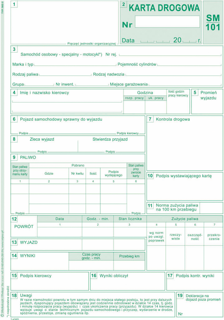 802-3N Karta drogowa sm/101 numerowana (samochód osobowy) 802-3N