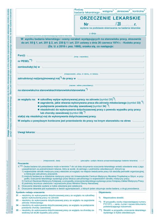 852-3 Orzeczenie lekarskie typ-2 A5 852-3