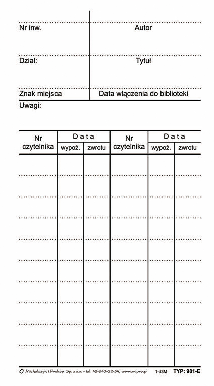 Znaczników: biblioteka, czytelnik, druki, druki akcydensowe, druki księgowe, karta, książka, Michalczyk i Prokop