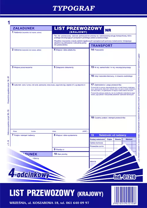 List przewozowy 4-odcinkowy (krajowy) 01210