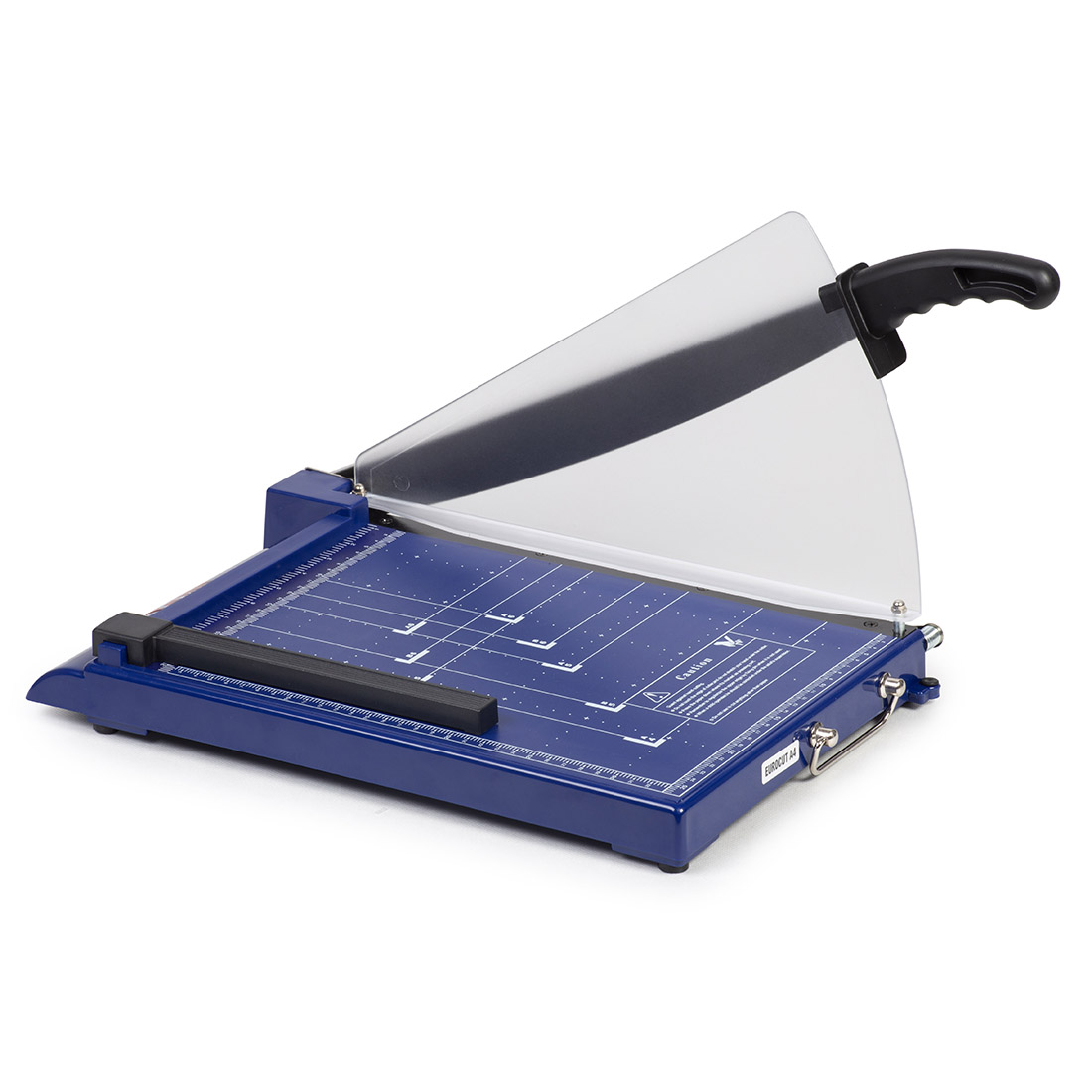 Lekka, poręczna obcinarka biurowa do formatu A4. Posiada szablony i podziałkę milimetrową, ułatwiające cięcie papieru. Ruchomy ogranicznik formatu umożliwia dokładne przygotowanie dokumentów do cięcia. Plastikowa osłona noża z ręcznym dociskiem zapewnia bezpieczeństwo pracy.