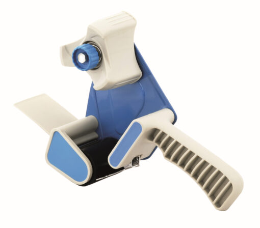 Bardzo pomocna przy oklejaniu kartonów taśmą pakową. Wyposażona w regulację naciągu taśmy oraz hamulec. Posiada sprężynującą prowadnicę i ergonomiczny uchwyt. Cechuje się solidną konstrukcją. Wygodna i poręczna w użyciu.